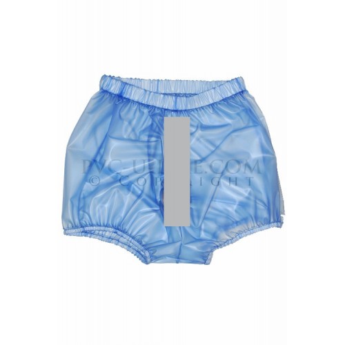 Geschlossene Gummihose aus PVC mit fest verschweißter Ausbuchtung/Hülle für das männliche Genital.